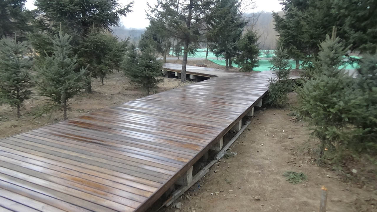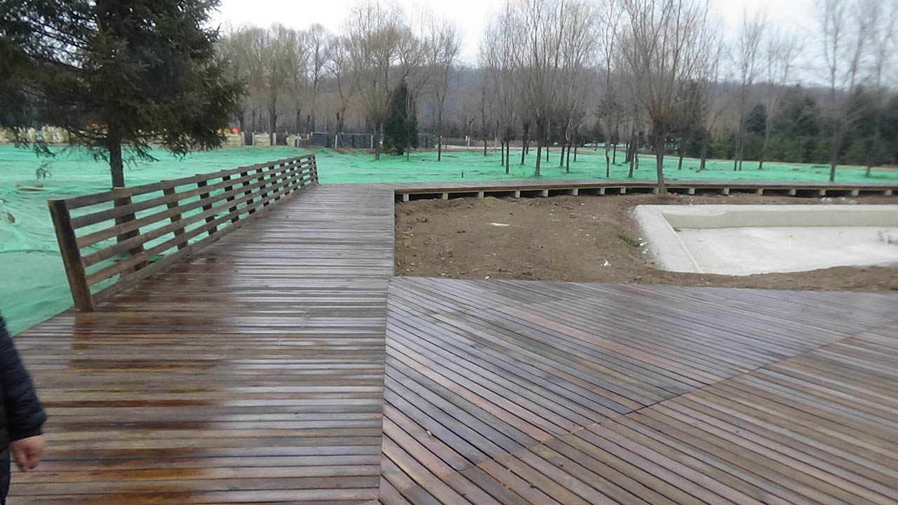 由于施工現(xiàn)場在公園內,游人較多,針對這種情況我單位設置專職安全員進行巡視,設置安全提示牌,對于正在施工的地段設置圍擋,現(xiàn)已完成雨水收集與利用、土建、排水部分,由于該工程存在設計變更,因此工程施工進度緩慢,現(xiàn)工程施工進度達到70%左右,具體完成時間待定。